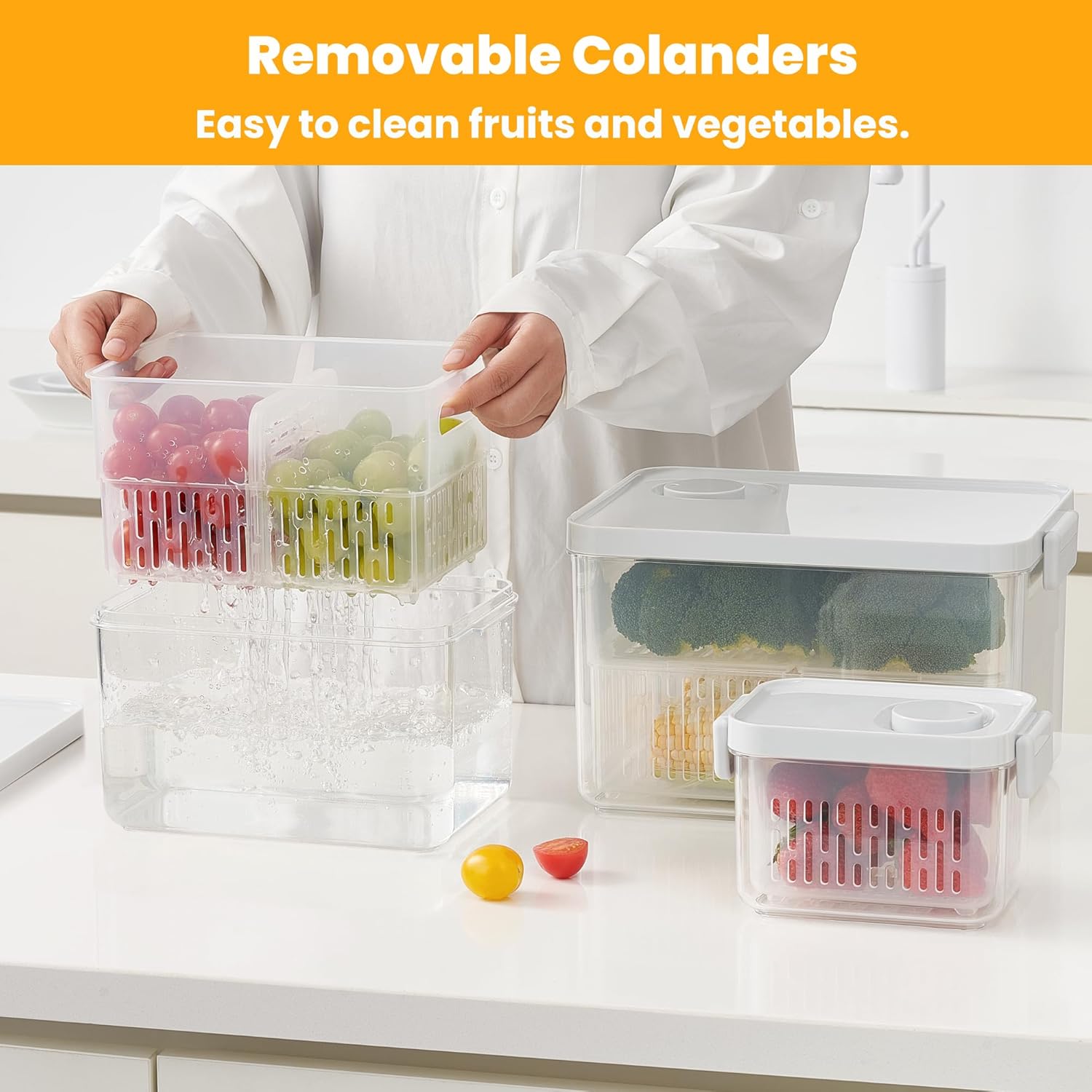 Keeps your fruits and veggies fresh, for longer, protected and organized in your fridge.