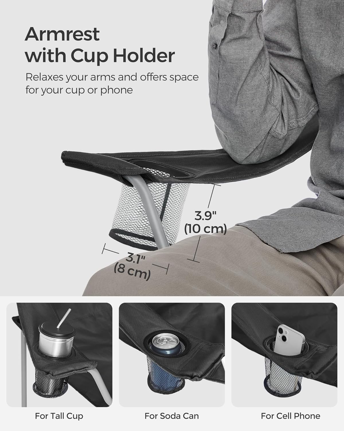 [330 lb Capacity] The steel frame with 0.8 mm thick tube walls is sturdy; 600D Oxford fabric with a water-resistant coating is wear-resistant and durable. Each outdoor chair can support up to 330 lb