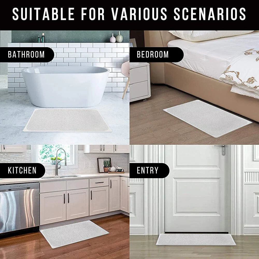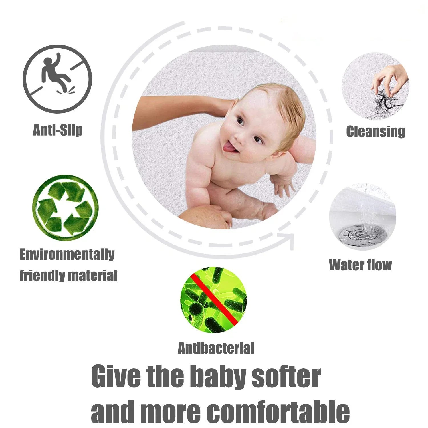 PVC bathroom mats featuring a loofah-style texture that drains water quickly and prevents slipping. Each rectangular mat measures 44ÿcm by 75ÿcm and is equipped with suction cups underneath for stability.