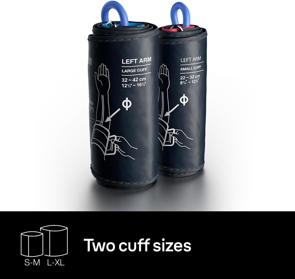 BEST FIT FOR IMPROVED ACCURACY AND COMFORT: Includes two cuff sizes designed to fit standard and large arms, to ensure accuracy and comfort during the reading
