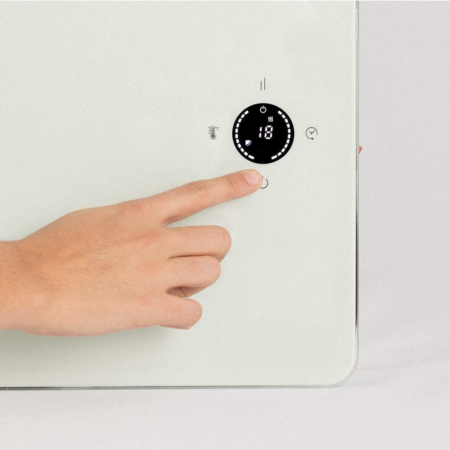 Heat-resistant glass: with an effective area for heating towels and bathrooms and rooms up to 10 m², thanks to its heat-resistant glass that reaches up to 40 °C.