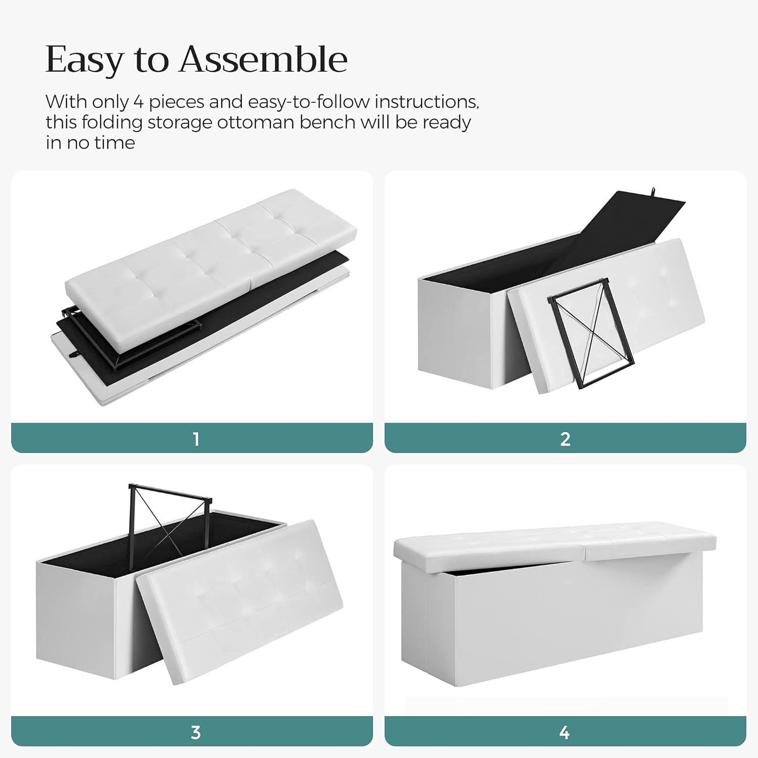 ?QUICK ASSEMBLY, EASY FOLDAWAY?This storage ottoman from the SONGMICS MAZIE Collection has a foldable design that allows quick setup in seconds by simply inserting the bottom panel. Easily fold and store it under the bed or in a closet when not in use