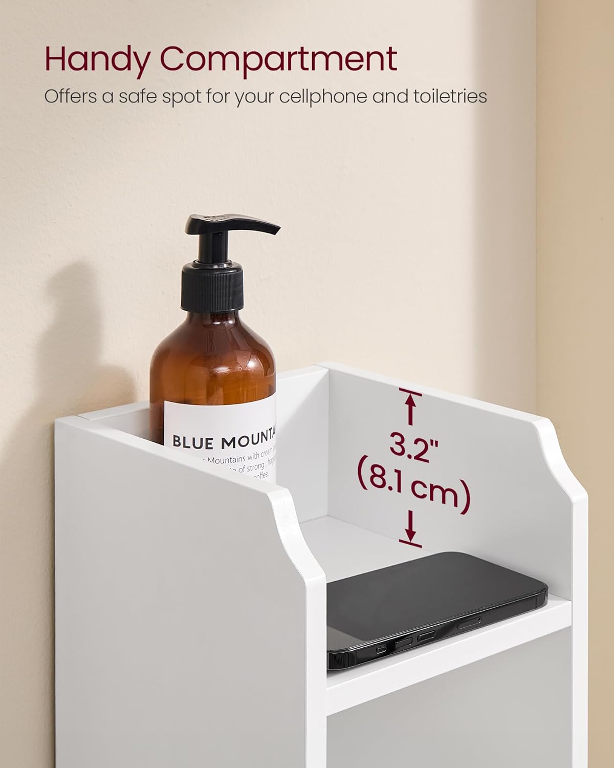 [Multiple Storage Options] The top compartment can display potted plants or place your cellphone, a middle compartment for toiletries, and a bottom cabinet to hide spare toilet paper-everything has its place!