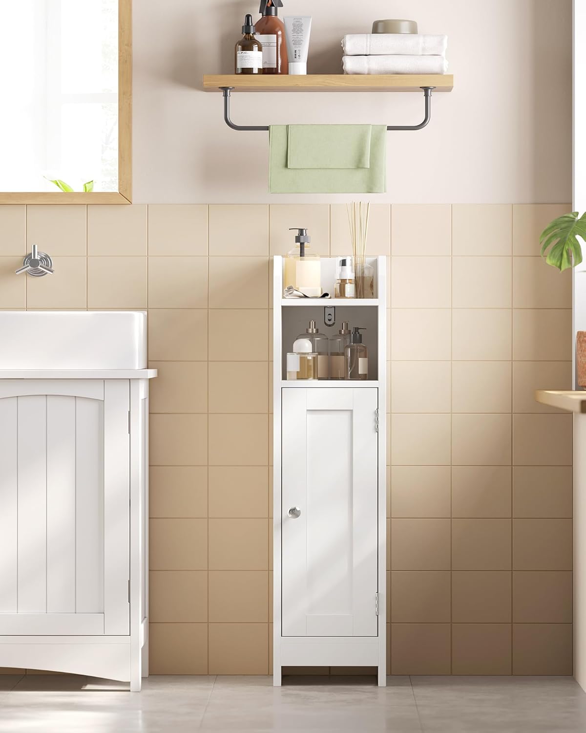 [Sturdy and Stable] Quality MDF ensures sturdiness and the anti-tip kit prevents the floor cabinet from tipping over for safety. This is a reliable, slim bathroom storage cabinet you can trust!