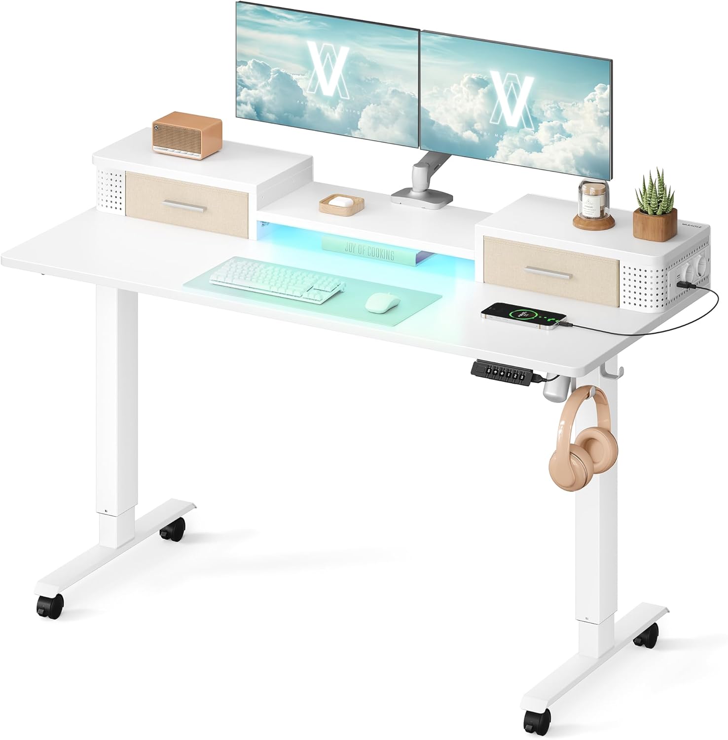 [High Quality Motor] Ensures even setting and low noise level (<50dB); the height adjustment mechanism stops and retracts slightly when it hits an obstacle to protect the desk from damage