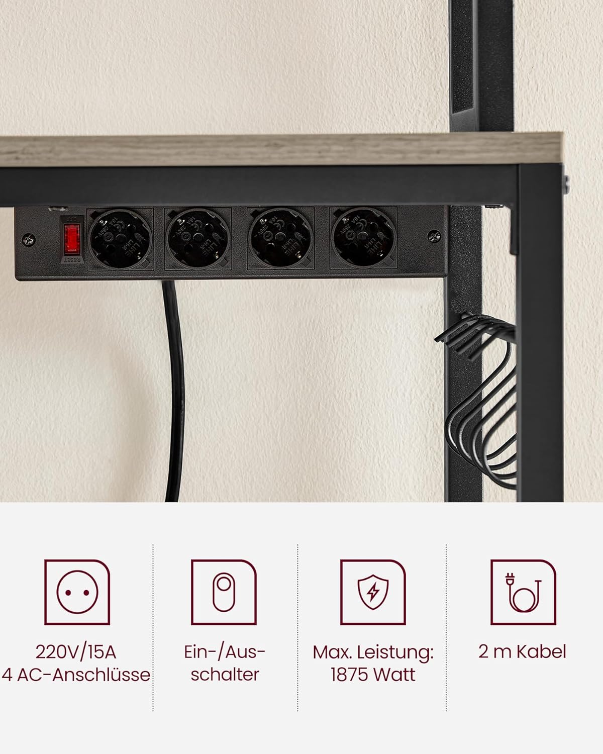 Safe and reliable: the integrated power strip of this standing shelf provides overload protection, leakage protection and, because it is equipped with an on/off switch, can be switched off when not in use - all for safety!