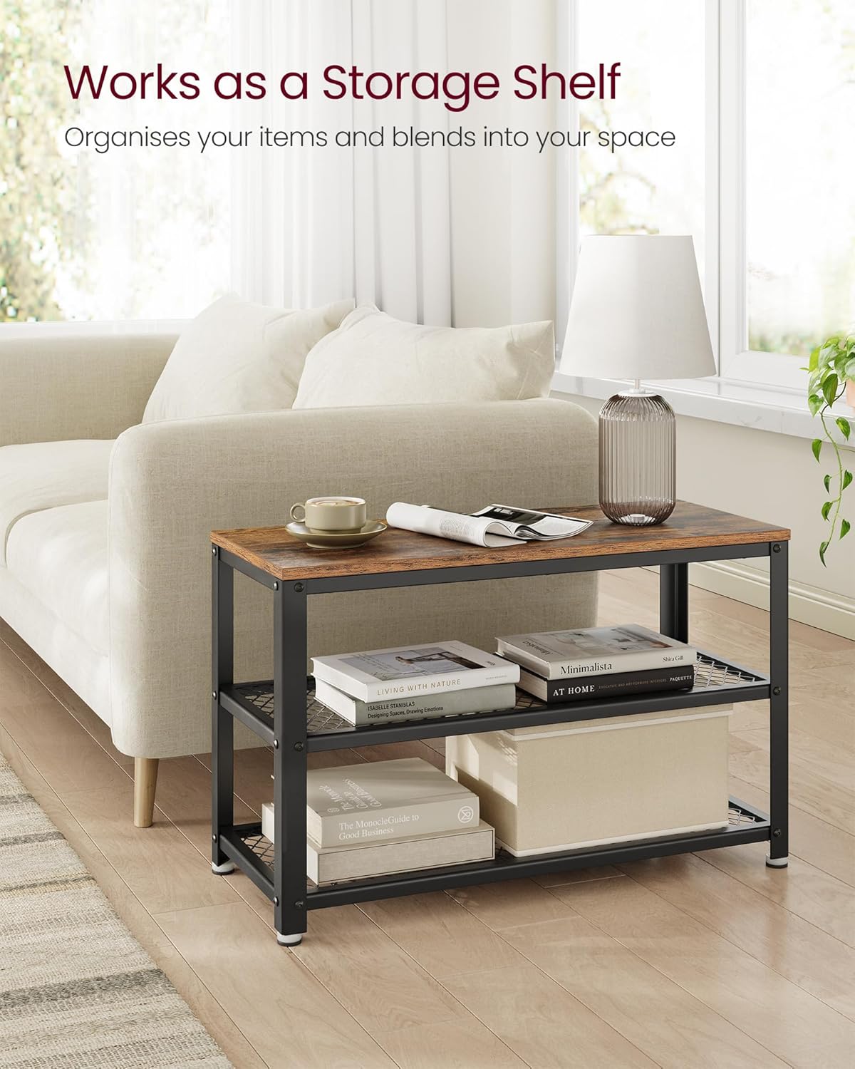 Welcome home: Don't let an empty and dull entrance await you when you get home. Add this shoe bench with warm rustic brown wood surface and black metal frame. Your entrance will have a different taste