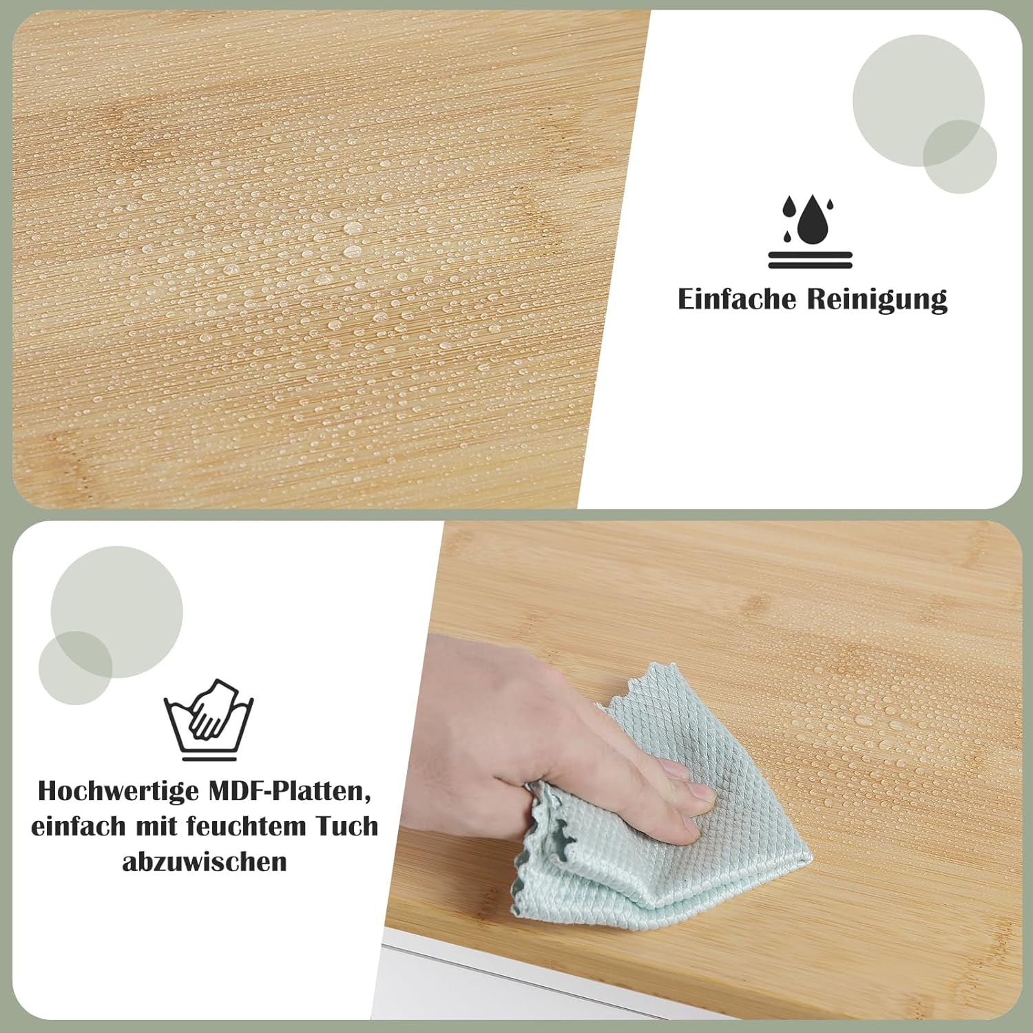 Robust and durable: the kitchen trolley made of lacquered MDF has abrasion resistance and corrosion resistance and a long service life. The worktop can hold 30 kg and hold an oven or for preparing simple dishes etc.